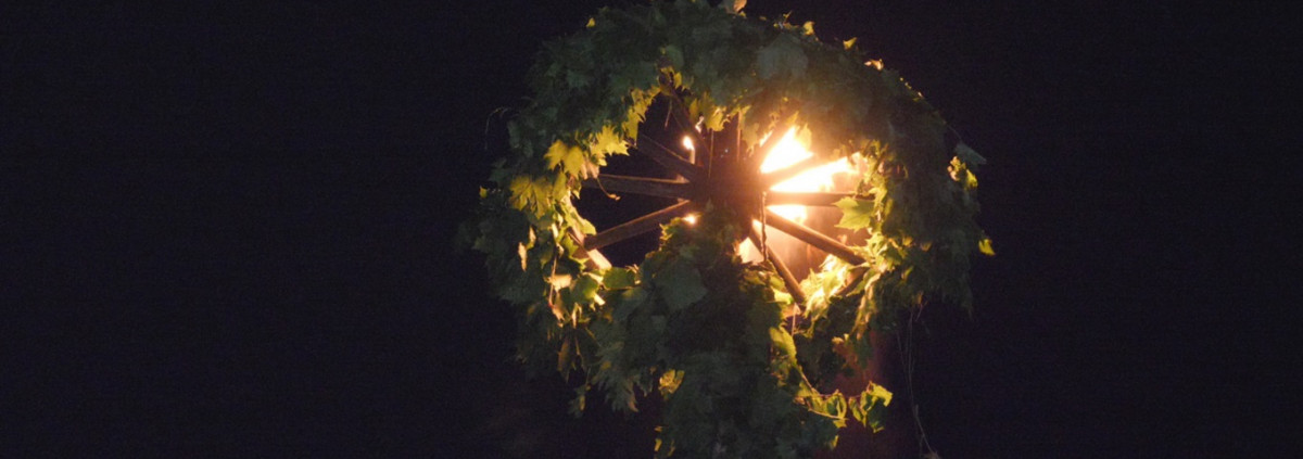 Vaišės, dainos, rateliai, šokiai. Degančio rato ridenimas nuo Šatrijos.